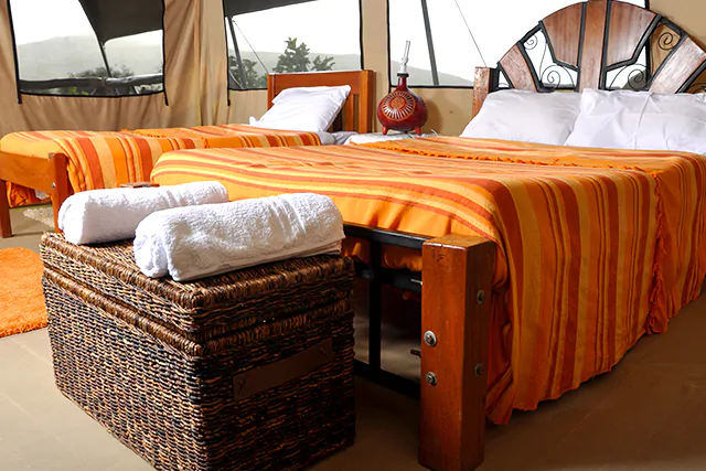 - Five tents have 2 double beds each, designed with the African wood to suit with the surroundings