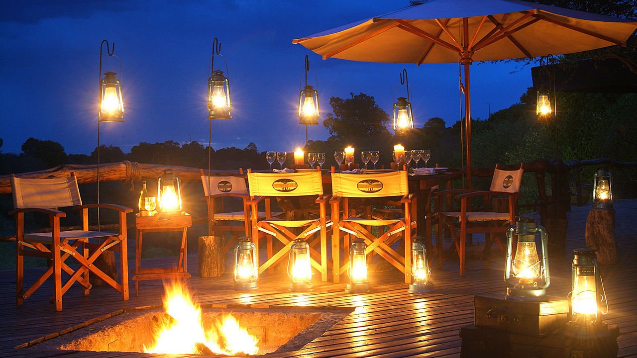 - Design & Ambience – The interiors balance romance and rustic elegance, blending dark wood furniture, oriental rugs, soft lighting, and subtle Maasai influences. The open layout invites natural breezes and the sounds of the bush inside, creating a true “close-to-nature” experience without compromising on comfort.