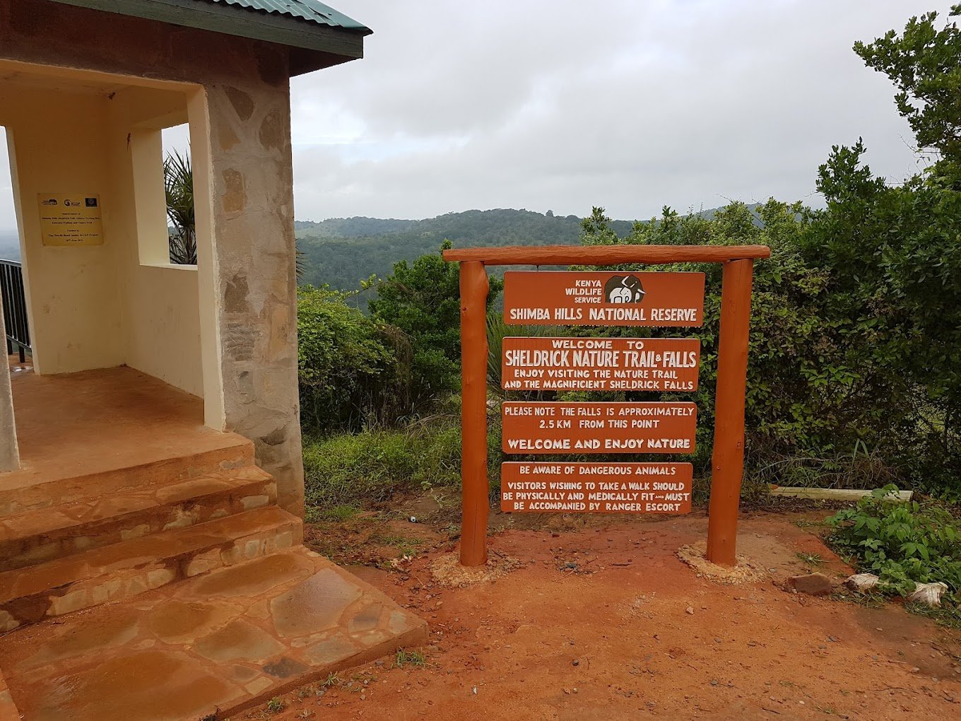 Always go with a KWS guide when hiking to Sheldrick Falls — the path can be steep and slippery.
